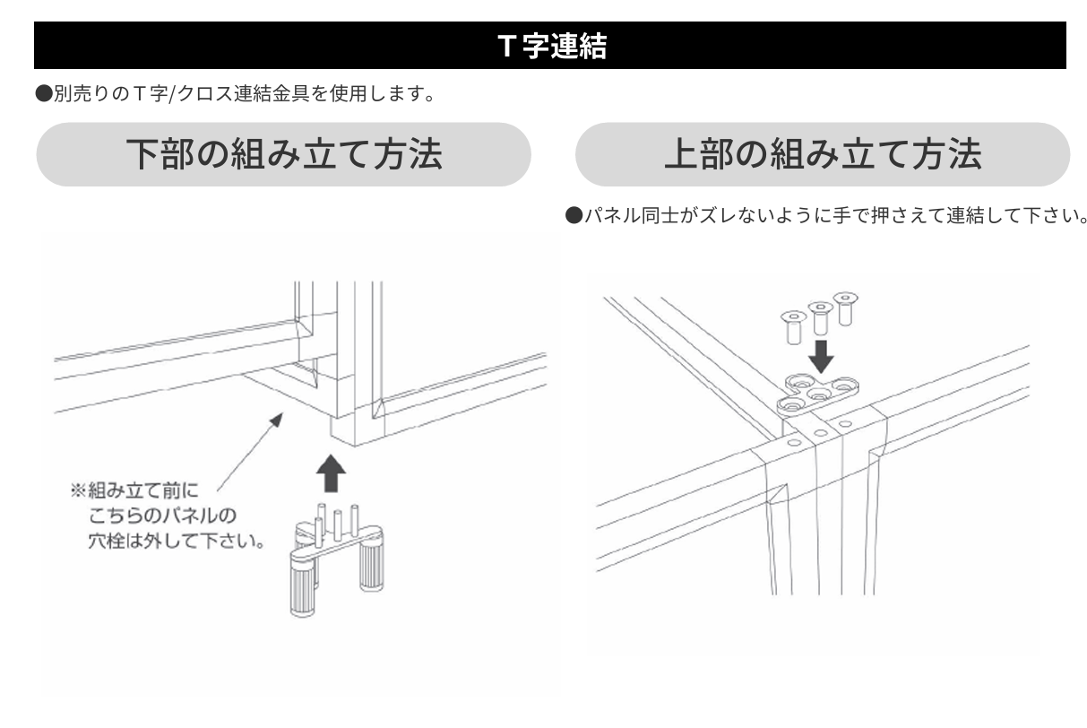 ●組み立てるときは、必ず周囲の安全を確認し、2名以上で行ってください。パネルが転倒しケガをすることがあります。